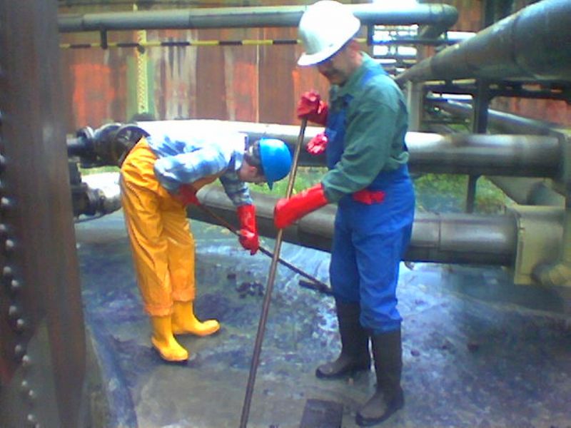 Saug-und Reinigungsarbeiten bei der Schiffsentladung, Reinigung von Gleis - und Förderanlagen, Kranbahnen, Kellern, Dächern, Lagerräumen usw. in Stahlwerken, Aluwerken, Gießerein und Kupferhütten